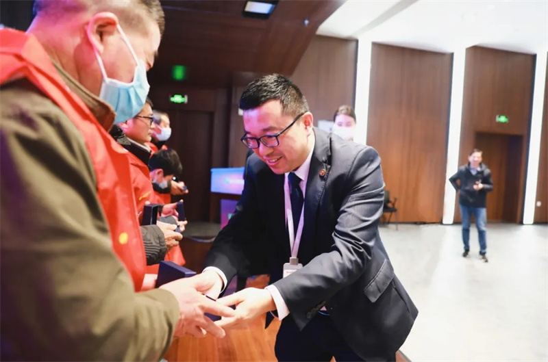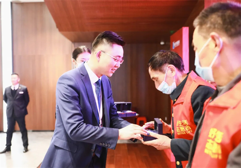 【華地好生活集團副總經理蔣凱授予志愿者徽章】