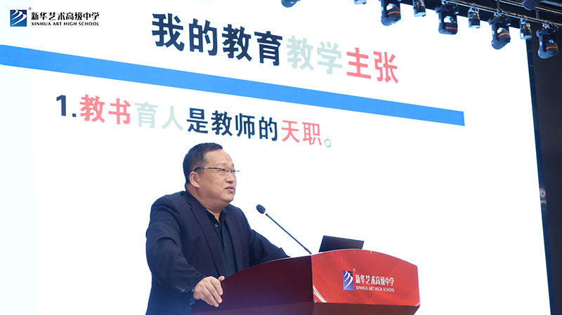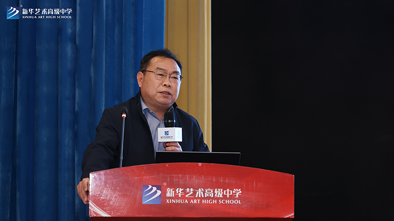下午教研活動中,新華藝術高級中學副校長李愛國向參會領導及老師全面介紹了新華藝術高級中學辦學歷程、辦學成就、課程體系、課堂創新及特色德育工作等,給與會老師留下了深刻印象。